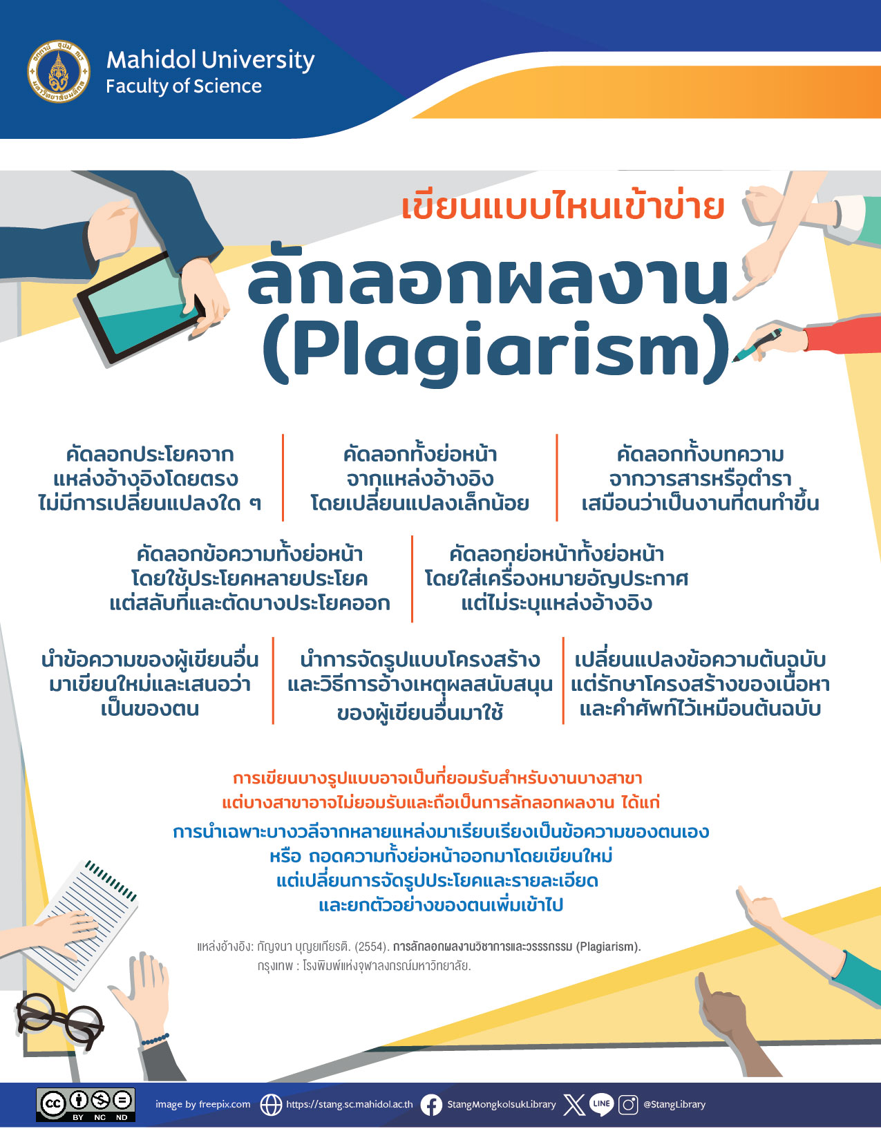 กัญจนา บุญยเกียรติ. (2554). การลักลอกผลงานวิชาการและวรรณกรรม (Plagiarism). กรุงเทพ : โรงพิมพ์แห่งจุฬาลงกรณ์มหาวิทยาลัย.