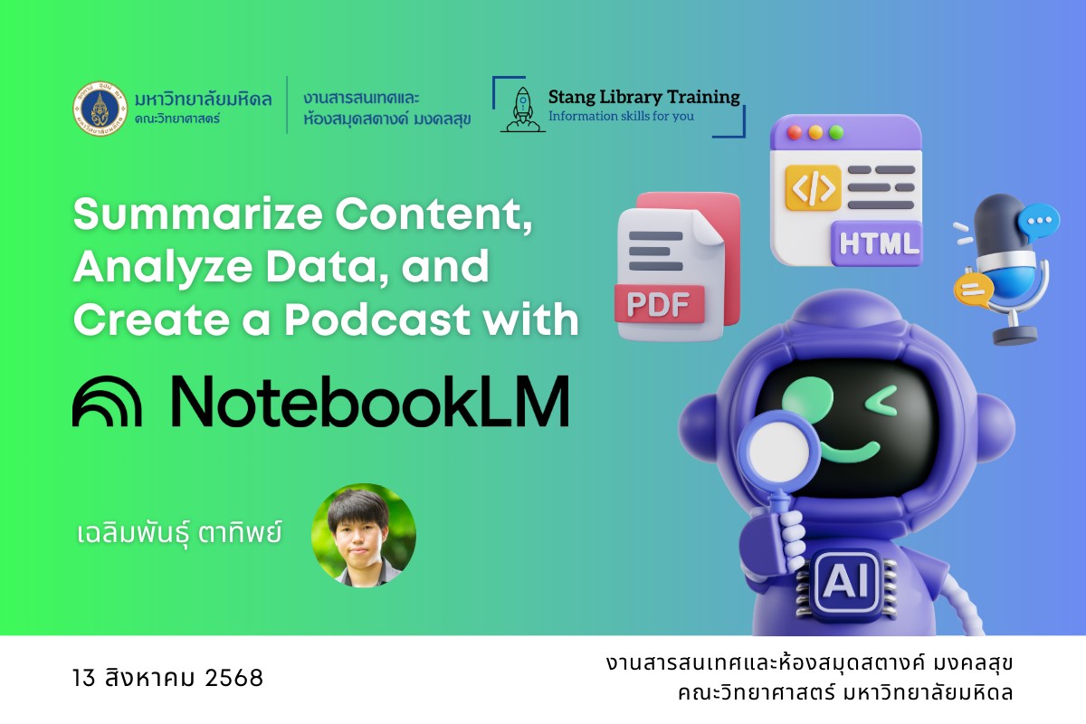 กิจกรรมในรูปแบบ Online หัวข้อ "สรุปเนื้อหา วิเคราะห์ข้อมูล และทำ Podcast ด้วย NotebookLM"