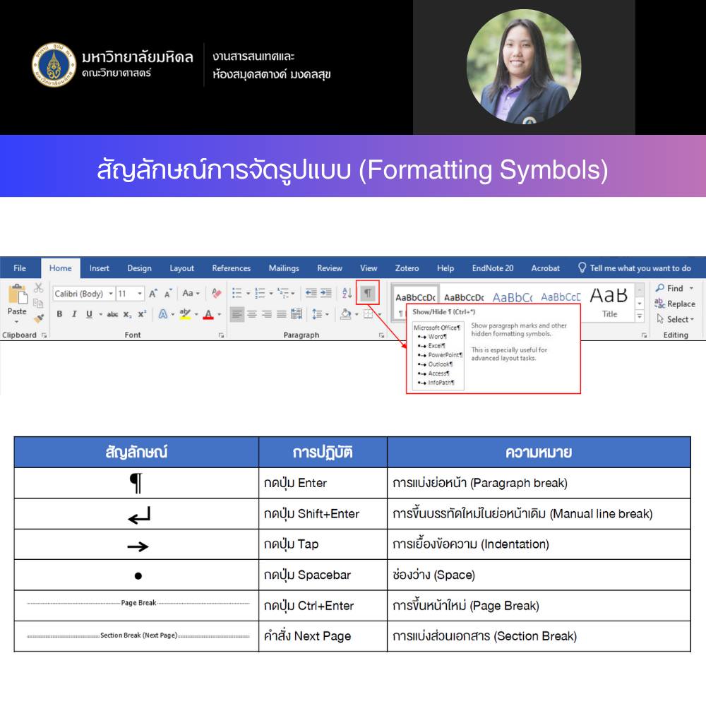 กิจกรรมในรูปแบบ Online หัวข้อ "การใช้ MS Word สำหรับเขียนรายงานและวิทยานิพนธ์ รุ่นที่ 6"