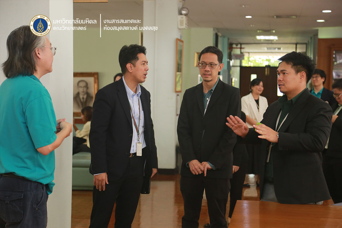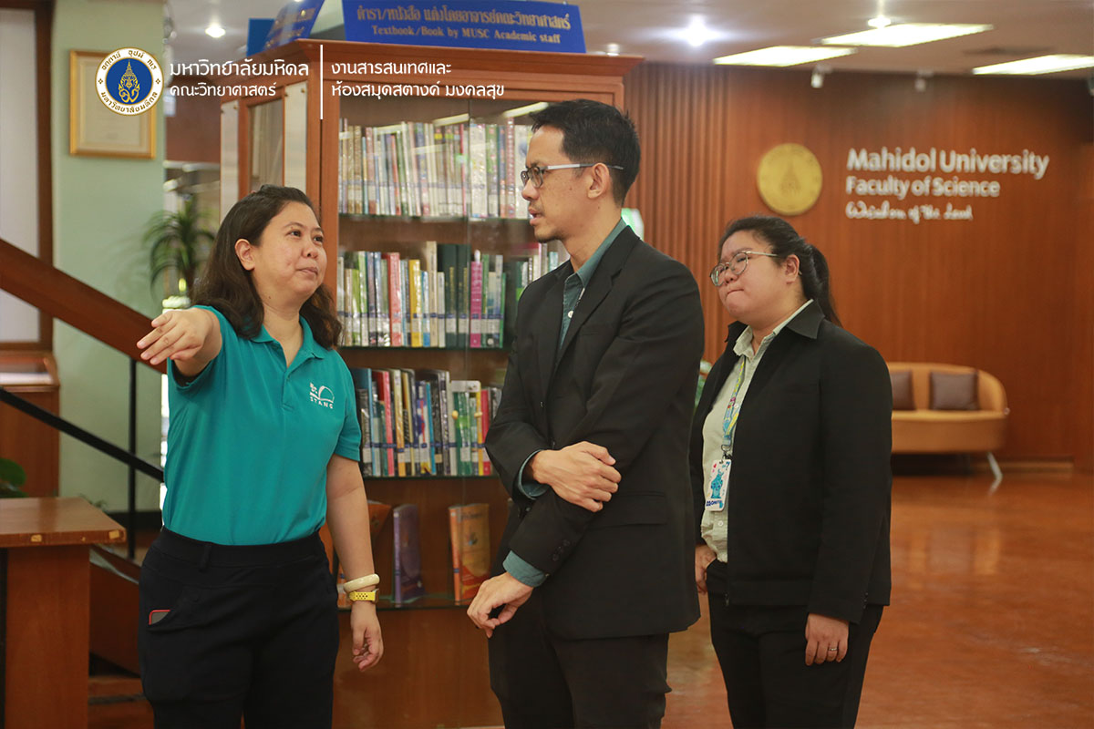 วันพุธที่ 18 มิถุนายน พ.ศ. 2568 ดร.ธน เตชะเลิศไพศาล ผู้ช่วยคณบดีฝ่ายสารสนเทศ และ นางสาวเฉิดฉันทร์ ราชบุรณะ หัวหน้างานสารสนเทศและห้องสมุดสตางค์ มงคลสุข ต้อนรับ คุณปรีดิ์ ดีบุกคำ ผู้อำนวยการส่วนห้องสมุดอิเล็ทรอนิกส์ สำนักงานคณะกรรมการกิจการกระจายเสียง กิจการโทรทัศน์และกิจการโทรคมนาคมแห่งชาติ (กสทช.) พร้อมด้วยคณะทำงาน ในโอกาสเดินทางมามอบหนังสือและอุปกรณ์เสริมทักษะสำหรับเด็กและเยาวชนให้แก่ ศูนย์รับบริจาคหนังสือและวารสาร ห้องสมุดสตางค์ มงคลสุข คณะวิทยาศาสตร์ มหาวิทยาลัยมหิดล เพื่อส่งมอบต่อให้กับโรงเรียนต่าง ๆ ทั่วประเทศ และเข้าเยี่ยมชมการดำเนินงานของงานสารสนเทศฯ ได้แก่ ห้องสมุดสตางค์ มงคลสุข พิพิธภัณฑ์สตางค์ มงคลสุข หอเกียรติยศนักวิทยาศาสตร์ดีเด่น พร้อมทั้งแลกเปลี่ยนประสบการณ์การทำงานกับผู้บริหารและบรรณารักษ์ของงานสารสนเทศฯ