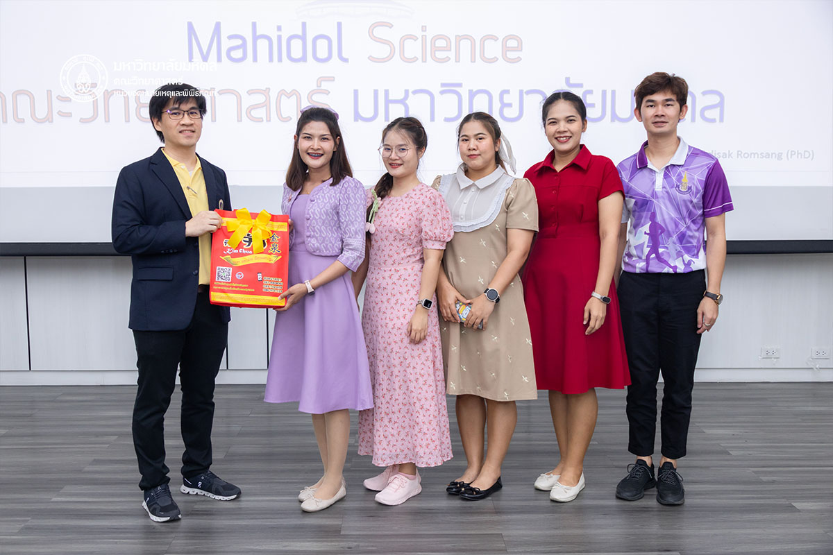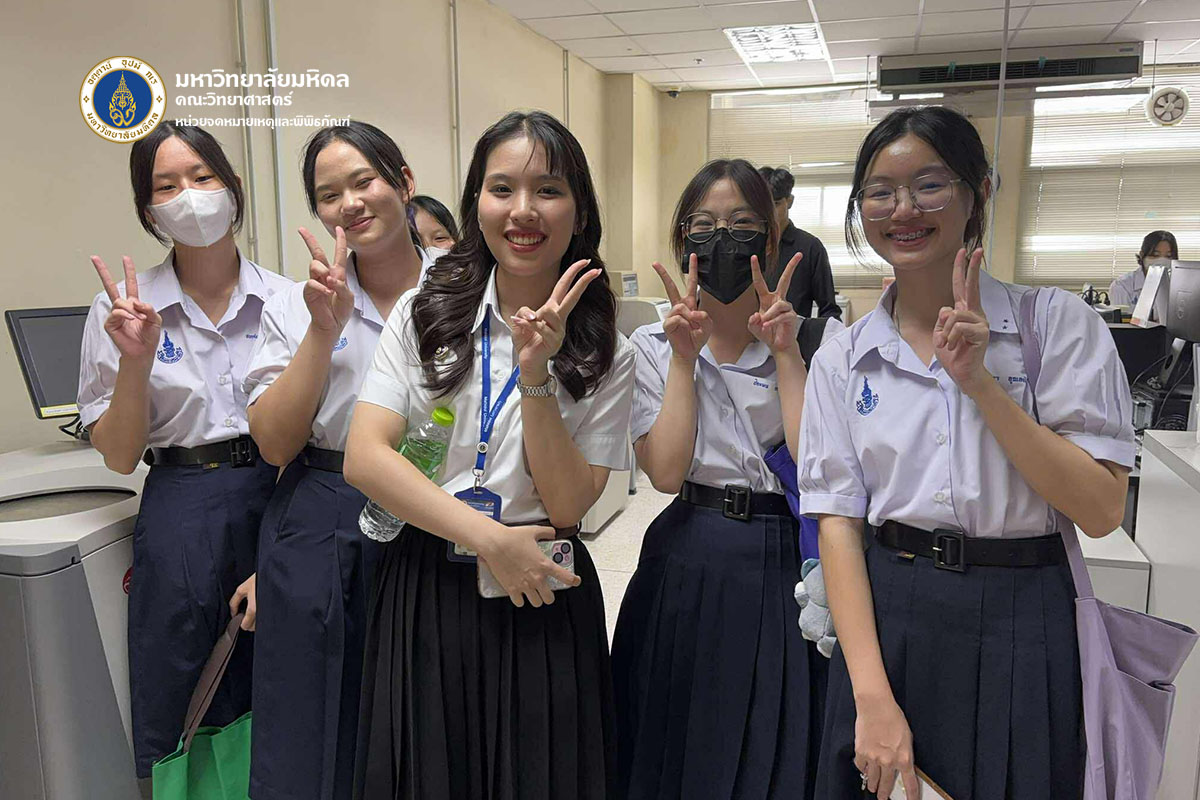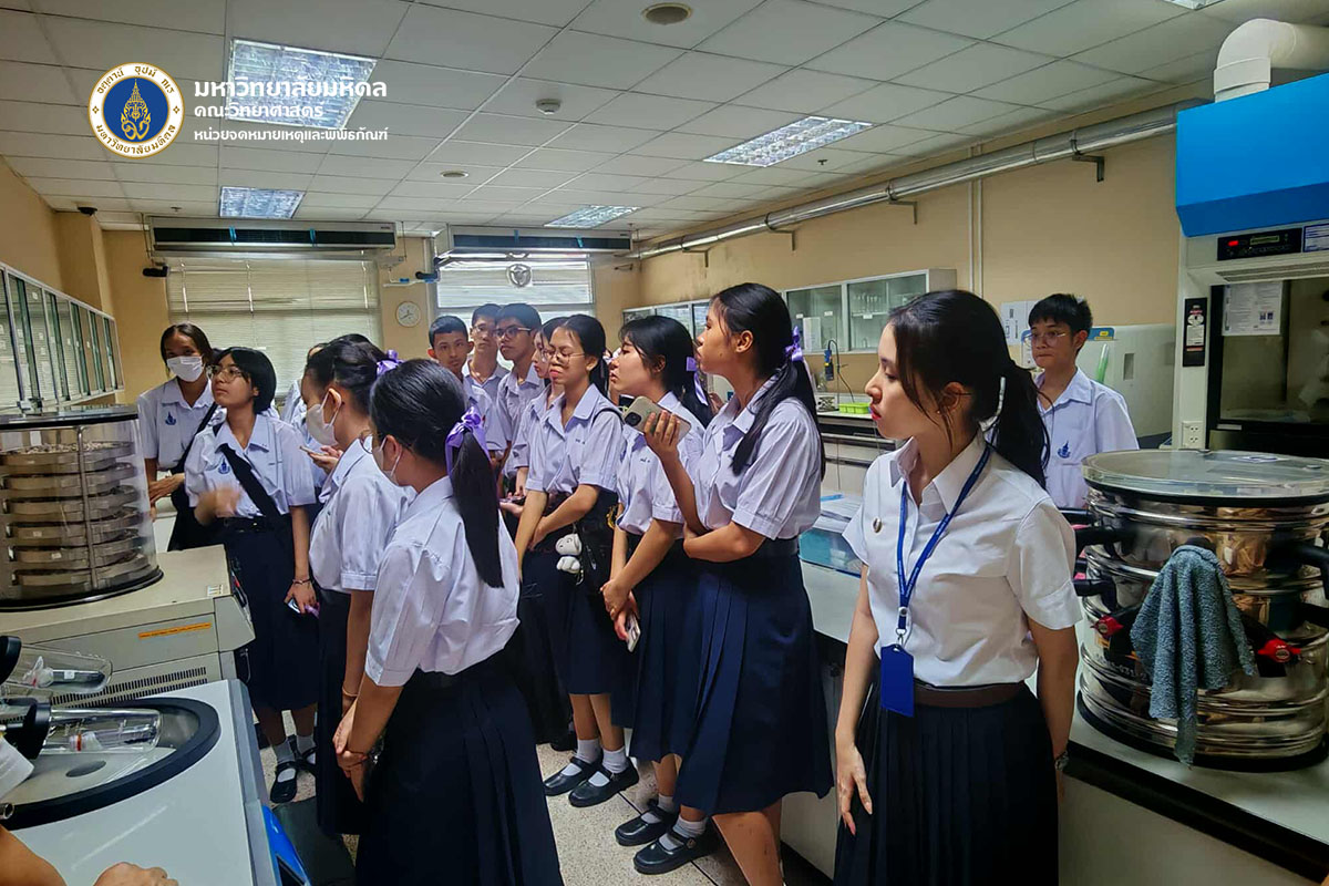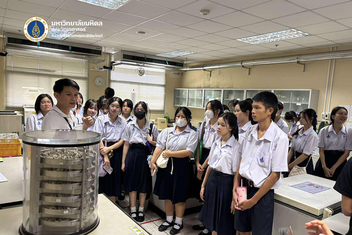 วันจันทร์ที่ ๒๓ มิถุนายน พ.ศ. ๒๕๖๘ คณะวิทยาศาสตร์ มหาวิทยาลัยมหิดล ต้อนรับคณะนักเรียนและอาจารย์จากโรงเรียนสิรินธรราชวิทยาลัย จังหวัดนครปฐม จำนวน ๑๐๔ ท่าน เข้าเยี่ยมชมหลักสูตรการเรียนการสอนของคณะวิทยาศาสตร์ เพื่อเป็นข้อมูลประกอบการตัดสินเข้าศึกษาต่อ โดยได้รับเกียรติจาก ดร.ธน เตชะเลิศไพศาล ผู้ช่วยคณบดีฝ่ายสารสนเทศ บรรยายสรุปเกี่ยวกับหลักสูตรต่าง ๆ