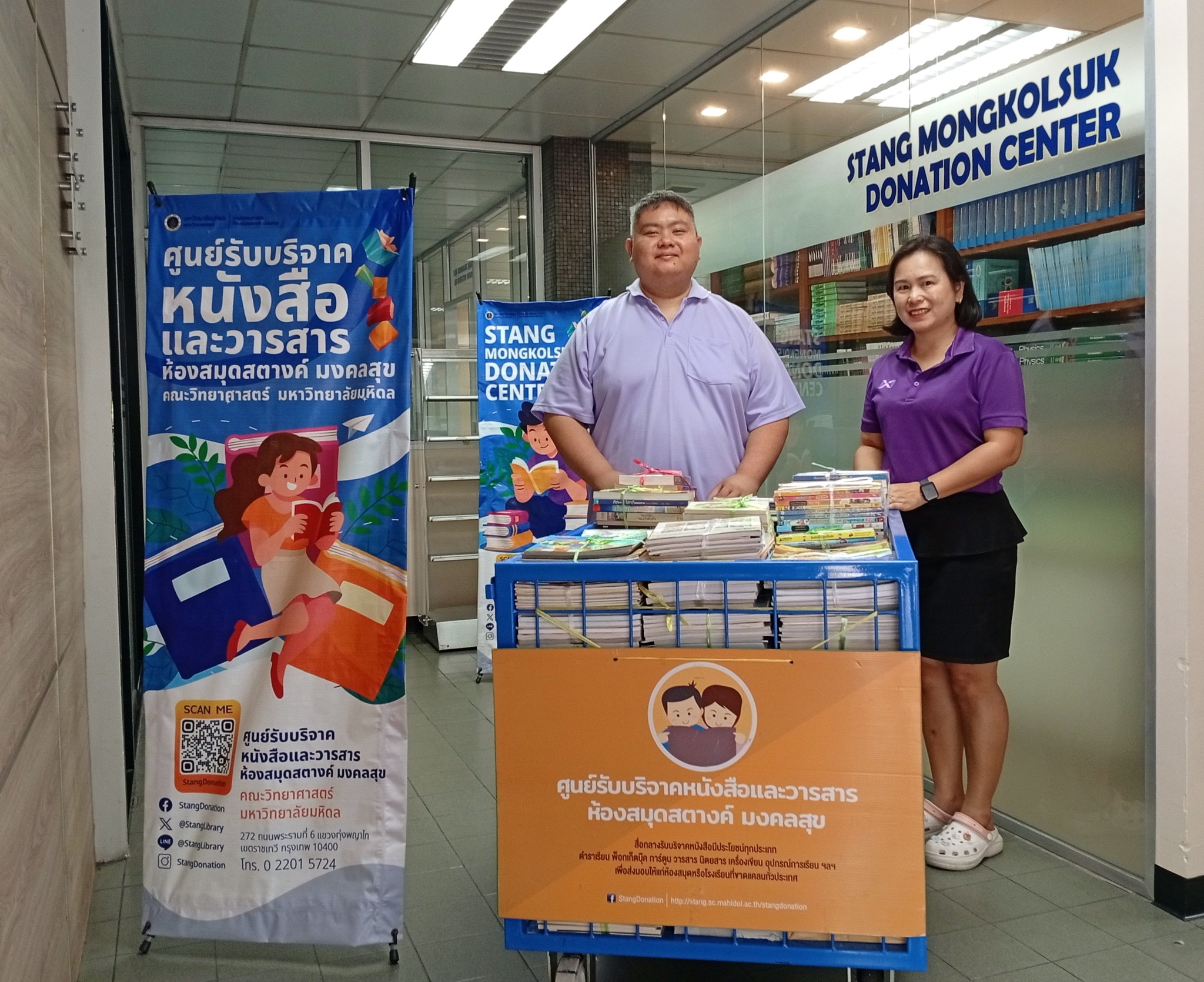 วันที่ 30 พฤษภาคม พ.ศ. 2568 ศูนย์รับบริจาคหนังสือและวารสาร ห้องสมุดสตางค์ มงคลสุข มอบหนังสือ จำนวน 1,680 เล่ม และวารสาร จำนวน 20 เล่ม เป็นจำนวนทั้งหมด 1,700 เล่ม แก่ โรงเรียนวัดไทยาวาส-นิลดำพิทยานุสรณ์ จังหวัดนครปฐม เพื่อนำหนังสือเข้าห้องสมุดของโรงเรียน ส่งเสริมการเรียนรู้ของนักเรียนและการเรียนการสอนของโรงเรียนมากยิ่งขึ้น เป็นการสนับสนุนกิจกรรมเพื่อสังคมอันเป็นประโยชน์และผู้ที่สนใจในการศึกษาค้นคว้าหาความรู้ด้วยตนเองในโรงเรียน