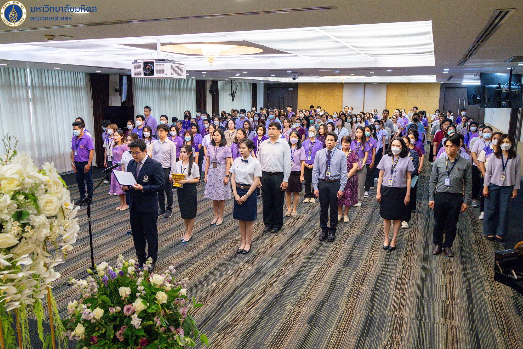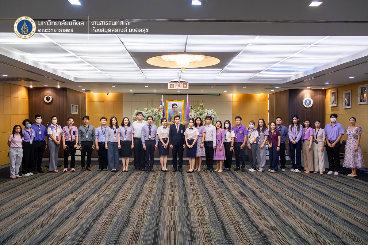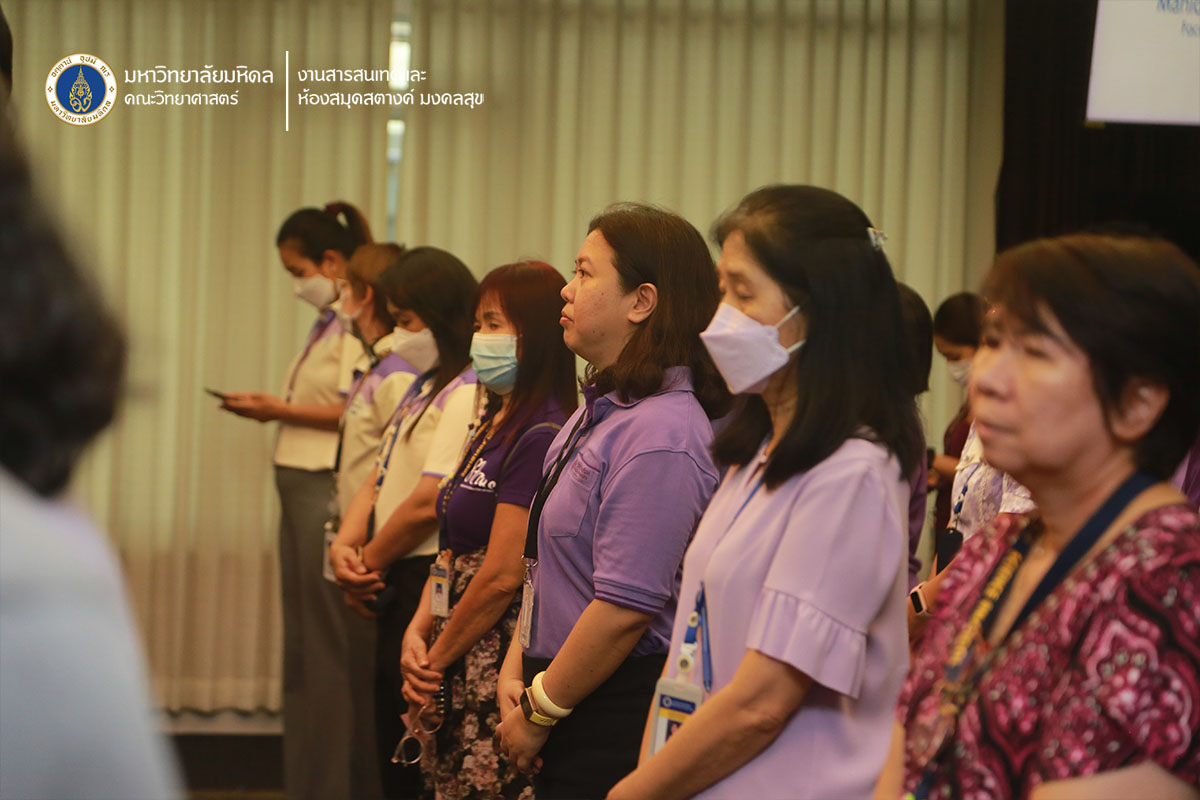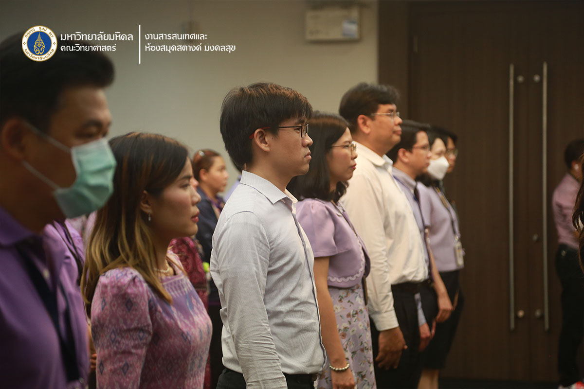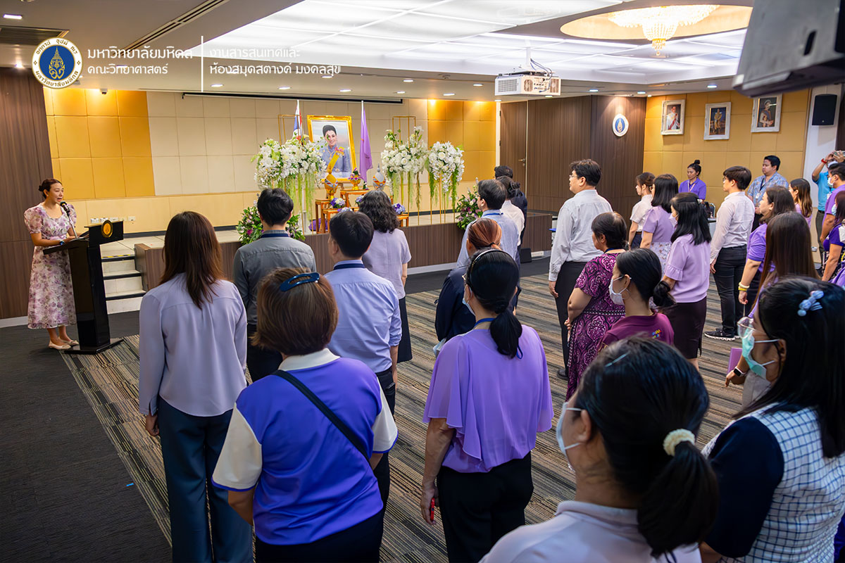 วันศุกร์ที่ 30 พฤษภาคม พ.ศ. 2568 ณ ห้องประชุมอาคารสตางค์ มงคลสุข ผู้บริหารและบุคลากร งานสารสนเทศและห้องสมุดสตางค์ มงคลสุข คณะวิทยาศาสตร์ มหาวิทยาลัยมหิดล นำโดย ดร.ธน เตชะเลิศไพศาล ผู้ช่วยคณบดีฝ่ายสารสนเทศ และ นางสาวเฉิดฉันทร์ ราชบุรณะ หัวหน้างานสารสนเทศและห้องสมุดสตางค์ มงคลสุข ร่วมพิธีถวายพระพรชัยมงคลเพื่อแสดงความจงรักภักดี เนื่องในวันเฉลิมพระชนมพรรษา สมเด็จพระนางเจ้าสุทิดา พัชรสุธาพิมลลักษณ พระบรมราชินี วันที่ 3 มิถุนายน