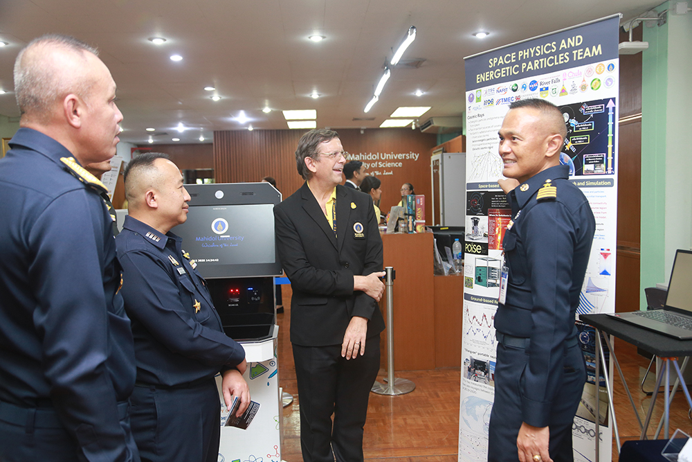 เมื่อวันจันทร์ที่ 15 กันยายน พ.ศ. 2568 คณะวิทยาศาสตร์ มหาวิทยาลัยมหิดล นำโดย รองศาสตราจารย์ ดร.ประสิทธิ์ สุวรรณเลิศ คณบดี และคณะผู้บริหาร หัวหน้าภาควิชา หัวหน้ากลุ่มสาขาวิชา และคณาจารย์คณะวิทยาศาสตร์ ต้อนรับคณะผู้เยี่ยมชมจากกองทัพอากาศไทย นำโดย พลอากาศโท บุญเลิศ อันดารา ผู้อำนวยการกองกิจการอวกาศ ศูนย์วิจัยพัฒนาวิทยาศาสตร์เทคโนโลยีการบินและอวกาศกองทัพอากาศ