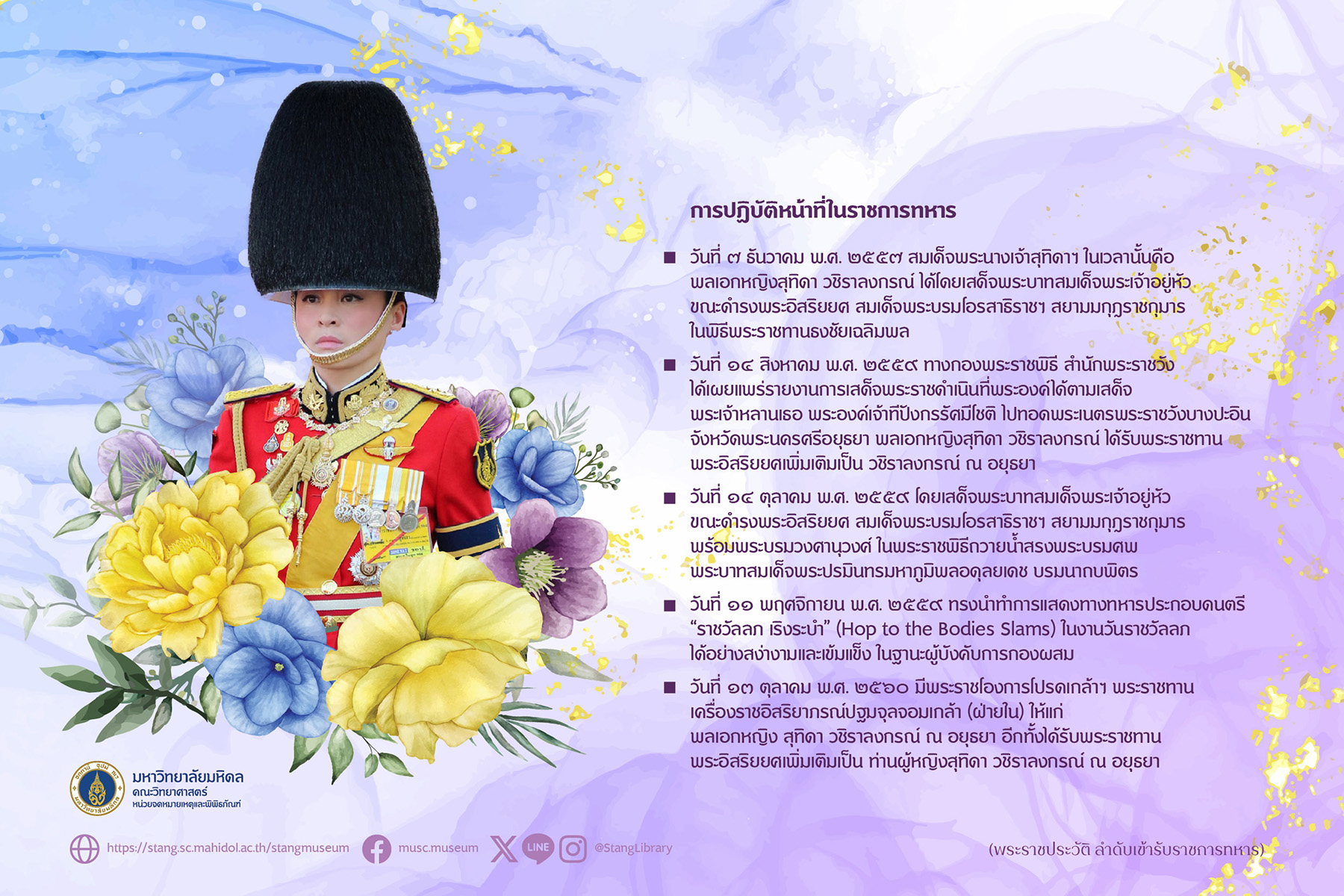 > พระราชประวัติ สมเด็จพระนางเจ้าสุทิดา พัชรสุธาพิมลลักษณ พระบรมราชินี (พระราชประวัติ ลำดับเข้ารับราชการทหาร)